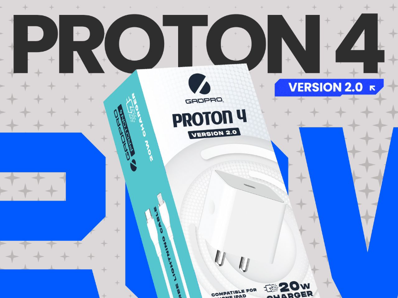 The GadPro Proton4 is a 20W charger designed specifically for iPhone and iPad devices. It delivers fast and efficient charging, ensuring your Apple devices are powered up quickly and safely.