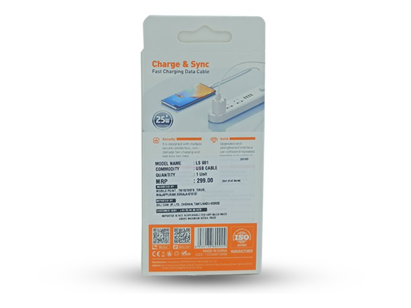 The LDNIO LS901 fast charging data cable is engineered for high performance with a powerful 25W quick charge output, ensuring rapid and efficient charging. Its ultra-strong wires enhance durability, providing a robust and long-lasting cable solution. This 2-in-1 cable supports both charging and transmission functions, offering versatility for various device needs. The anti-bending feature adds an extra layer of resilience, minimizing wear and tear caused by bending and ensuring a reliable and sturdy cable for your fast charging and data transfer requirements.