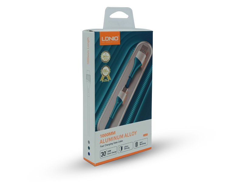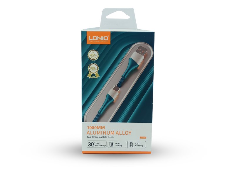 The LDNIO LS631 1000mm aluminum alloy fast charging cable is a high-quality accessory designed for optimal performance. With a 30W quick charge capability, it facilitates fast charging for your devices. The cable features ultra-strong construction, ensuring durability and longevity. Its anti-bending design adds resilience, reducing wear and tear caused by bending. The inclusion of a turbo engine further enhances the cable's efficiency, making it a reliable choice for fast charging needs. The aluminum alloy construction adds a touch of premium quality to this cable, combining both durability and style.
