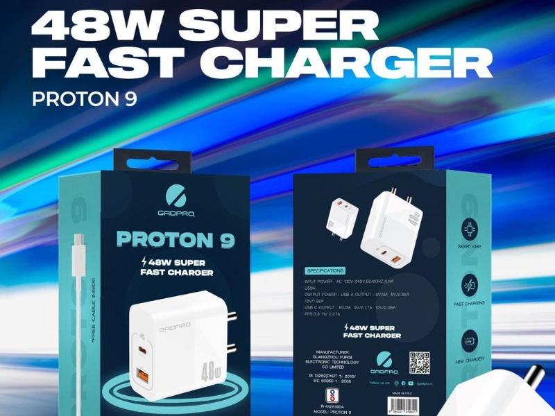 The Gadpro Proton9 Type-C Charger is a powerful 48W charger designed for super-fast charging. It features one USB port and one PD (Power Delivery) port, allowing you to efficiently charge multiple devices at once. This compact and versatile charger is perfect for on-the-go power needs.