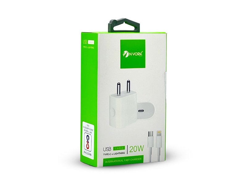 NYORK (HC602) PD FAST CHARGER WITH 20W USB-C TO LIGHTNING CABLE USB TYPE-C TO LIGHTNING-FAST CHARGER