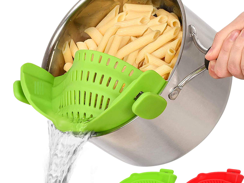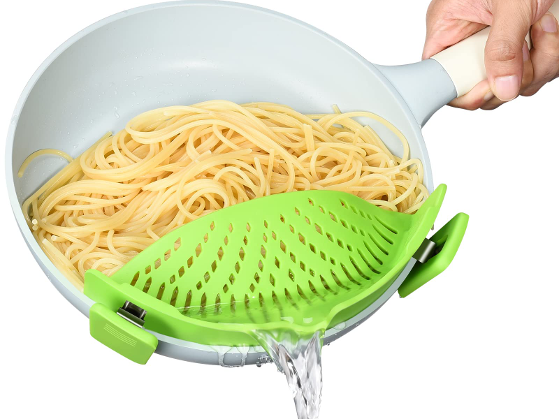 PLASTIC UNIVERSAL CLIP-ON PASTA RICE STAINER, FRUIT, VEGETABLE WASHING WATER REMOVER CLIP FOR BOWLER