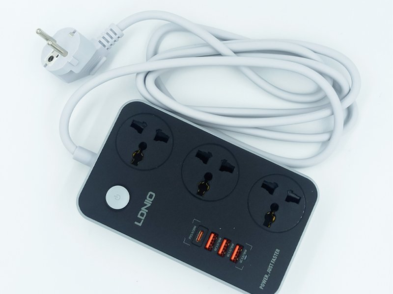 LDNIO (SC3412) 20W USB-C PD 3-PORT QC3.0 EXTENTION 3 Ways Power Socket & 4 USB Port