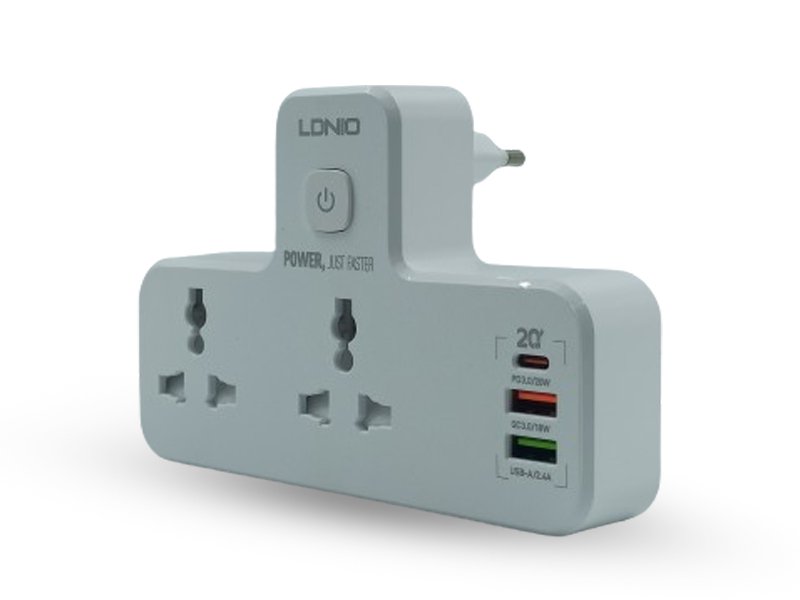 LDNIO (SC2311) 1 USB-C & 2 USB-A 2 OUTLETS PD & QC3.0 EXTENTION Power Socket With 2 Power Socket 3 USB Port