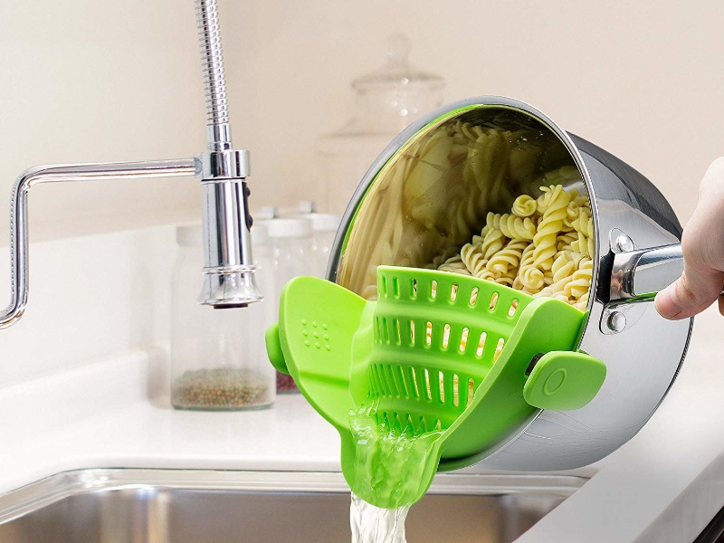 PLASTIC UNIVERSAL CLIP-ON PASTA RICE STAINER, FRUIT, VEGETABLE WASHING WATER REMOVER CLIP FOR BOWLER
